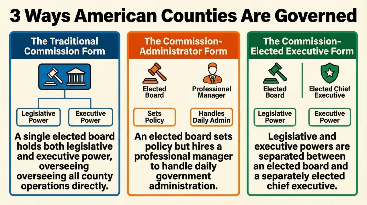 County governments across the United States do not all work the same way. Just as cities have developed different models of local government to suit their needs, counties have adopted a variety of structures for organizing their leadership and administration. The form a county government takes can significantly affect how decisions are made, how accountable officials are to residents, and how effectively services are delivered.