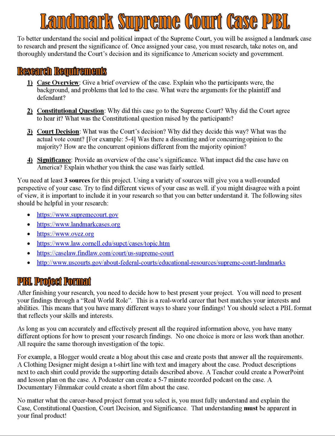 You can also elect to first review some of the major court cases with the PowerPoint or Google Slides file to briefly introduce studenst to the basics of the cases.