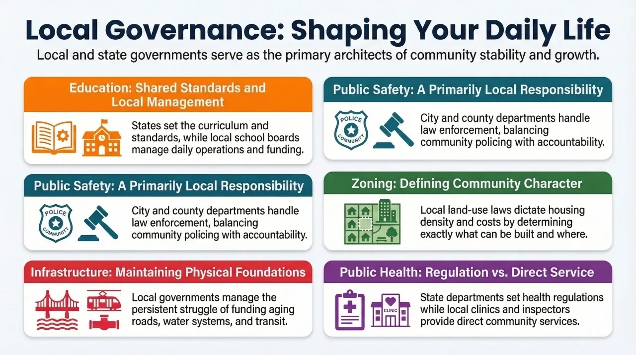 State and local governments deal with a wide range of issues that directly affect the daily lives of residents. While debates in Washington often dominate the news, some of the most consequential policy decisions in American life are made in state capitals and city halls.